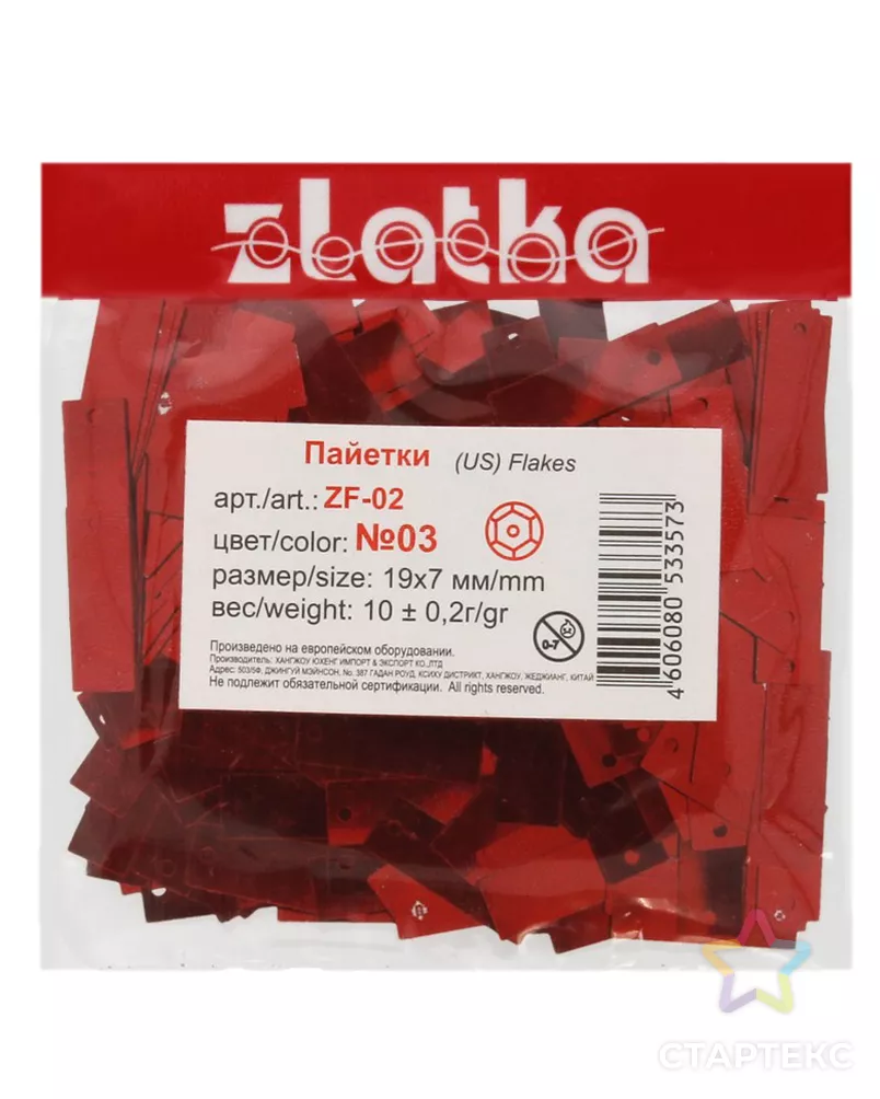 Пайетки "Zlatka" россыпью ZF-02 19 х 7 мм 5 х 10 г №03 красный красного цвета