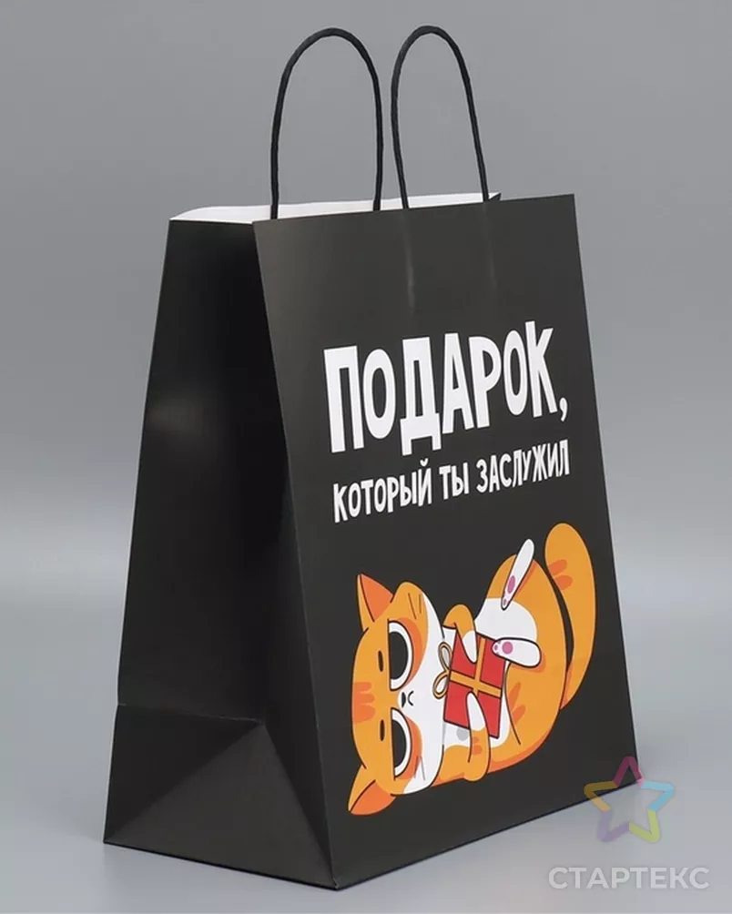 Пакет подарочный крафтовый, упаковка, «Киса», 28×32×15 см чёрный